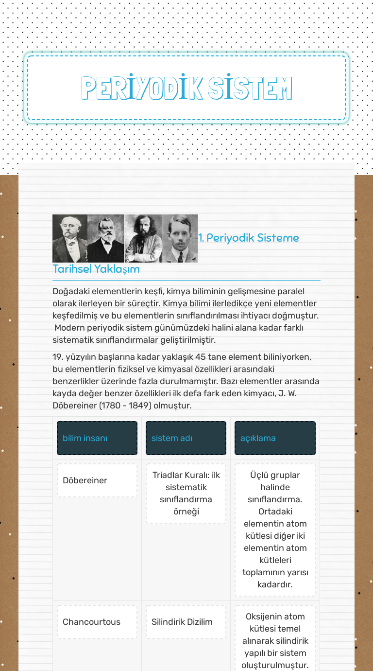 Bu yazdırabileceğiniz ve kullanabileceğiniz periyodik tablolardan oluşan bir koleksiyondur. Glenn seaborg periyodik tablonun altına iki sıra. Periyotlarda sağdan sola doğru ilerledikçe elementlerin özellikleri değişir bu değişime periyodik değişim denir.
