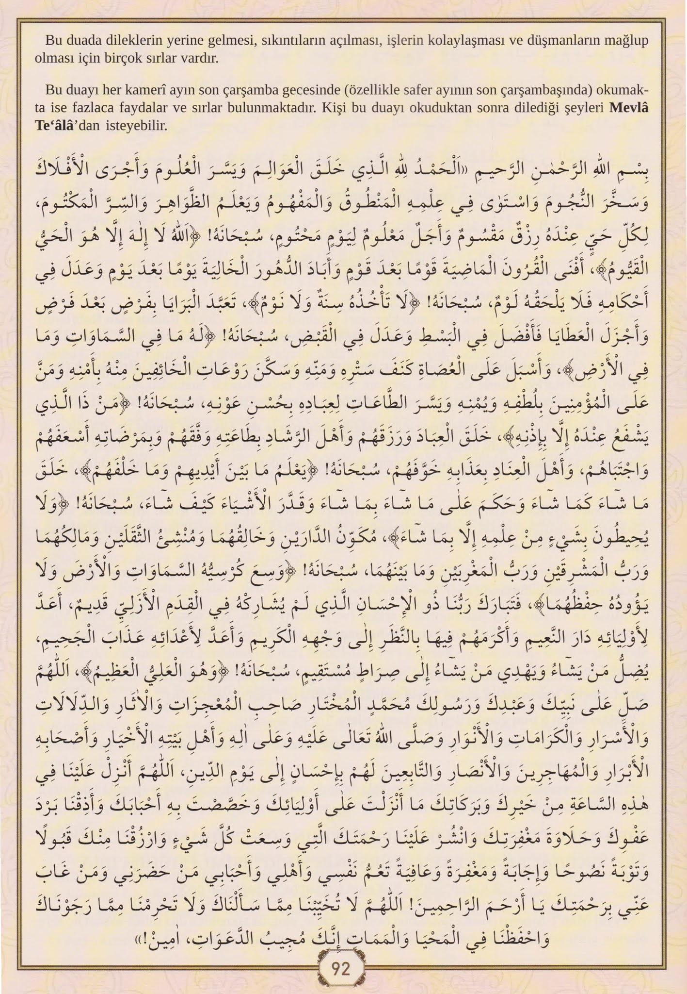 Bu dualar arasında ayetel kürsi duası da yer almaktadır.