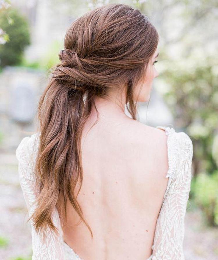 Askılı sırtı açık ve tül kumaşa sahip olan bu gelinlik aklınızdaki gibi olabilir. Oldukça zarif bir görünüm sergileyen balık sırtı örgüsü küçük bir topuz yardımı ile kusursuzlaştırılarak son şeklini alıyor.