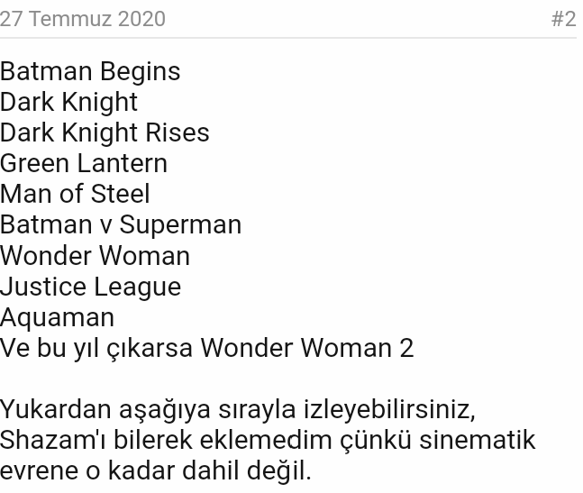 Dedim ki madem bu film serisini kronolojik sıralamaya göre izliyorum. Marvel filmleri içeriğinde sizler için avengers kahramanlarının bütün filmlerini hikaye sırasına göre listeledik. 8 2 christopher nolan ve batman üçlemesinin ilk filmiyle hem dc comics yükselişe geçmiş hem de batman karakteri dünyada hak ettiği değere sonunda kavuşmuştur şüphesiz. 2021 yılında çıkması beklenen yeni filmi de dahil toplamda 17 filmle beyaz perdeye taşınan bu efsane izleyicilerinin büyük beğenisini toplamakta.