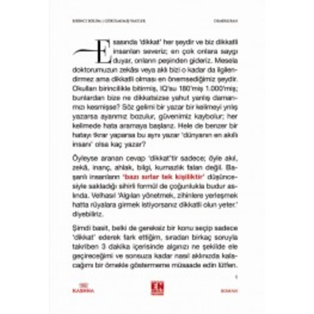 ön kapaktan başlıyorsunuz okumaya ve arka kapakta bitiriyorsunuz. Velhasıl algıları yönetmek zihinlere yerleşmek hatta rüyalara girmek istiyorsanız dikkatli olun yeter. Esasında dikkat her şeydir ve biz dikkatli insanları severiz.