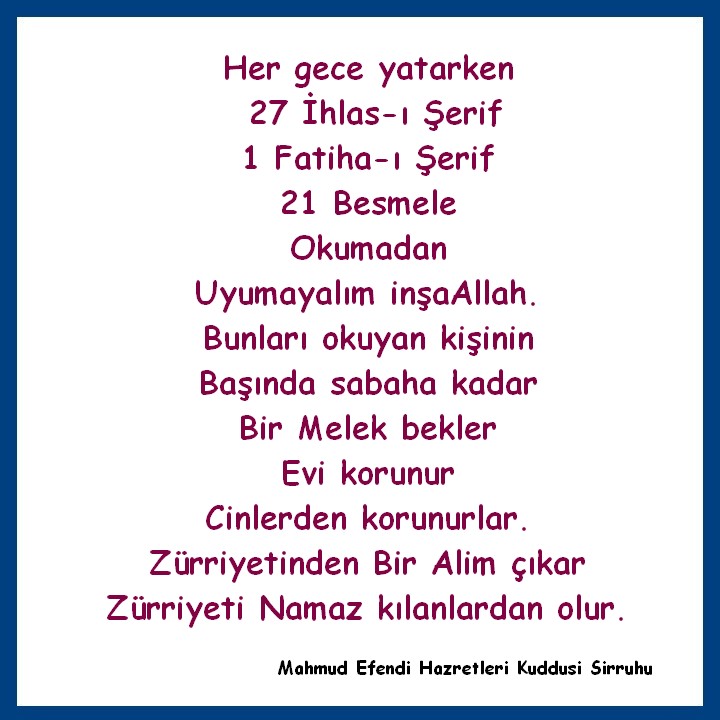 Besmele i şerifenin bazı faziletleri. Hiç şüphesiz cebrail a s ın peygamber efendimiz s a v e bildirdiği şekliyle kuran ı kerimin diziliş sırasındaki ilk suresi fatihadır ve fatihanın da ilk ayeti bir çok alimlere göre besmele i şerifedir bu yüzden hem harf sayısı hem de satır sayısının kuran ı kerimle ilgisi büyüktür. Yatmadan önce sağ tarafına yatarak abdestli bir şekilde 21 defa bismillahirrahmanirrahim okuyan şeytan cin hırsız ani ölüm ve diğer bir çok beladan korunur. Besmele ve fatihanın sırları muhyiddin i̇bn arabi 35 00 tl 10 i̇ndi̇ri̇ml i̇.