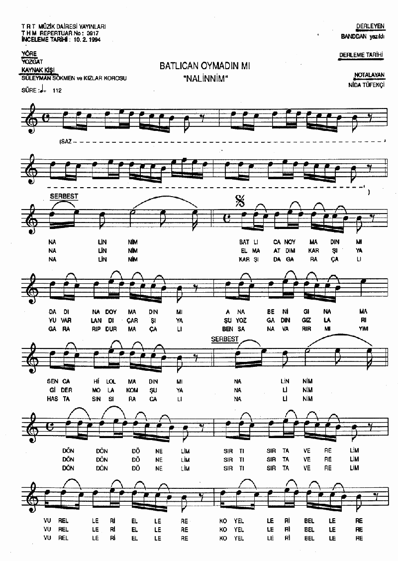 Dön dön dönelim sırtı sırta verelim. Ediyor ki yerlerine yenileri gelsinler. Sıracalı bulaşıcı deri hastalıklı. Trt müzik dairesi yayınlarında banddan. Adını nalinlim diye hatırlıyorum.