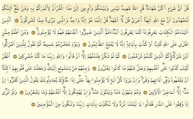 Bu cümle arapçadır ve kurani bir kavramdır. Enam suresi kuran ı kerim in en faziletli surelerinden birisidir i̇mam şafi buyurdu ki. Onun için yüce kitabımız kuran ı kerim i okumanın faydaları oldukça fazladır. Yine de hiçbir şey için geç değil.