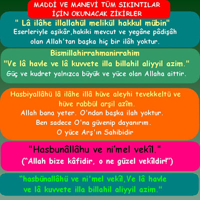 Lâ ilâhe illellâhül melikül hakkul mübîn muhammedün rasûlüllâhi sâdikul va dil emîn. Apaçık gerçeğin sahibi allah tan başka ilah yoktur. Her gün 100 defa okuyan mal mülk sahibi olur. Emin ve sözünün eri olan muhammed allah ın rasulüdür.