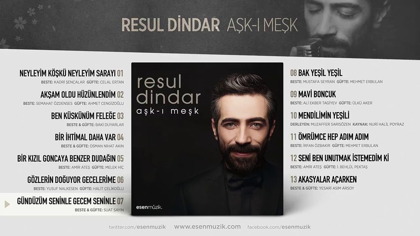 Mp3 medya internet ortamında kullanıcılarına herhangi bir ücret talep etmeden en iyi kalitede müzik indirme imkanı sunan aynı zamanda müziği indirmek istemeyen kullanıcılara online olarak mp3 dinleme hizmeti sunan bir şarkı sitesidir. Resul dindar gunduzum seninle indir mp3 indir dinle. Askimi bir sir gibi indir mp3 indir dinle. Resul dindar gündüzüm seninle gecem seninle şarkı sözleri.