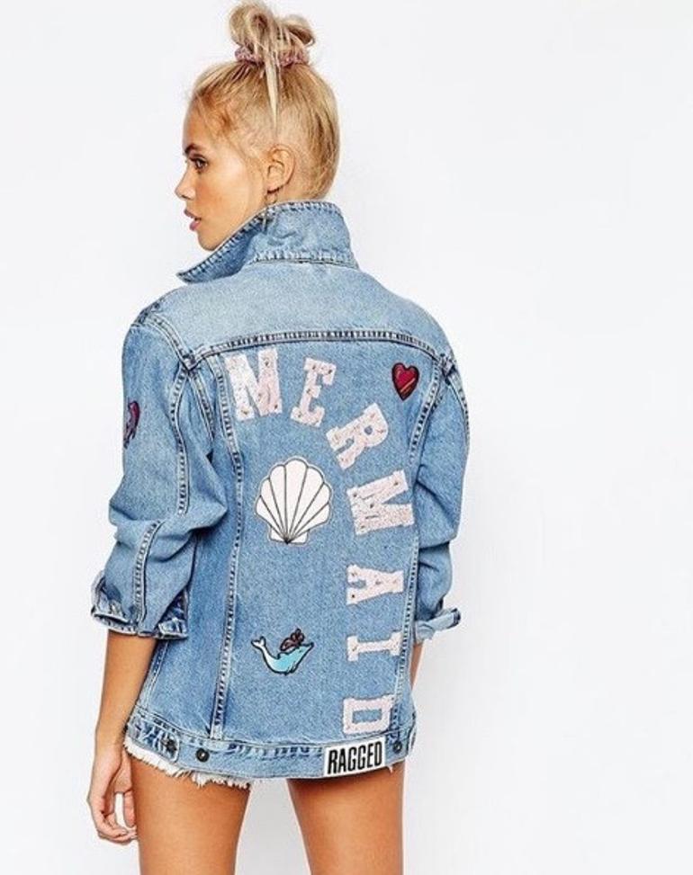 sırtı desenli kot ceket