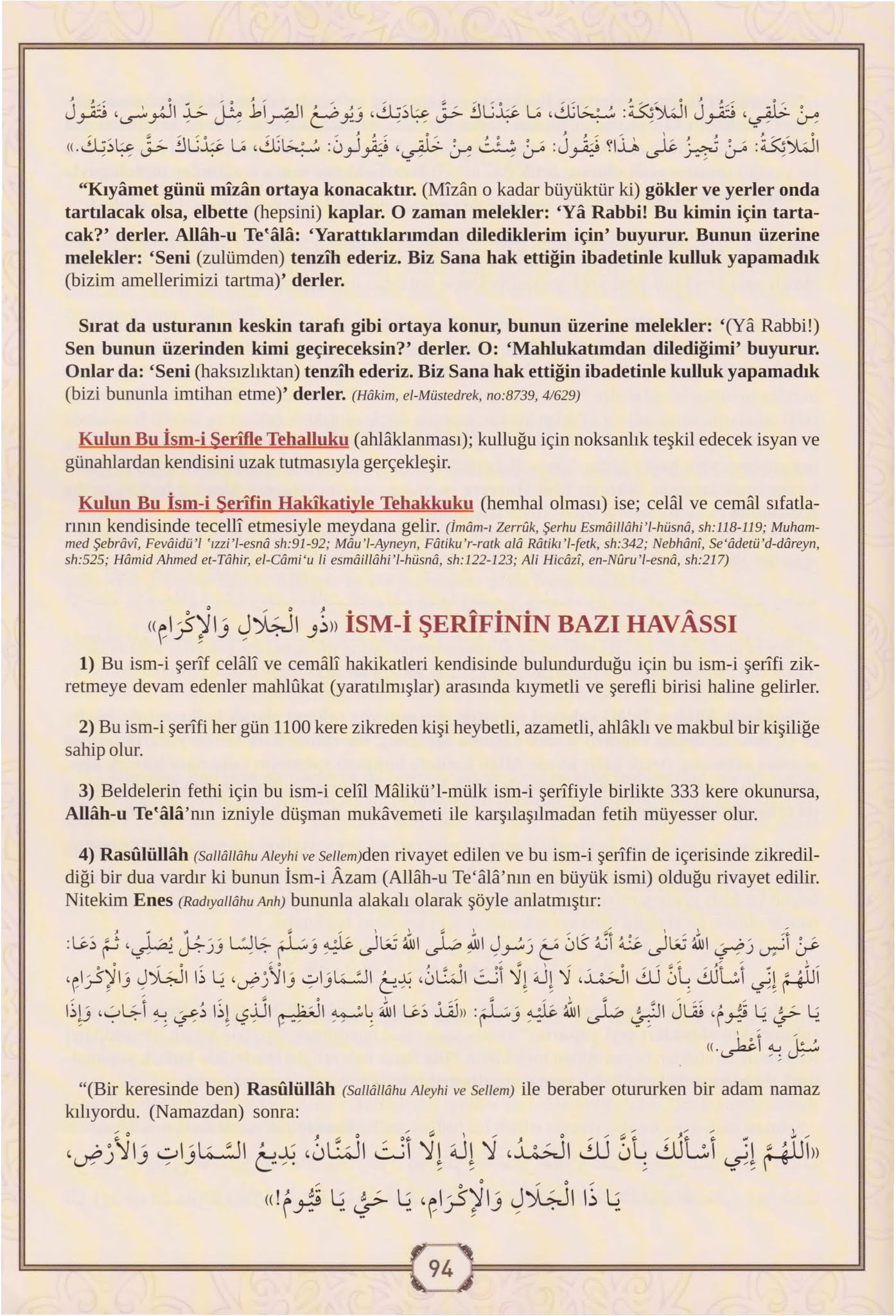 Enes radıyallahu anh den rivayet edildiğine göre resûlullah sallallahu aleyhi ve sellem şöyle buyurdu. Ey azamet ve kerem sahibi allahım. Yâ malikel mülk ya zel celali vel ikram esmaül hüsna mucizeleri. 1100 defa günde zikir sayısı.